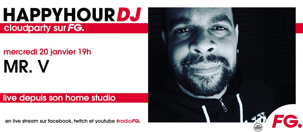 Chaque soir à 19h (du lundi au samedi) : Happy Hour DJ présenté par Antoine Baduel avec les plus grands DJs en live audio et vidéo dans le studio FG ou en Cloudparty depuis des lieux d’exception.
